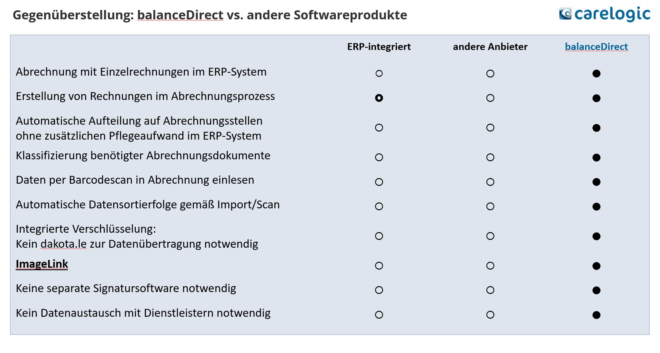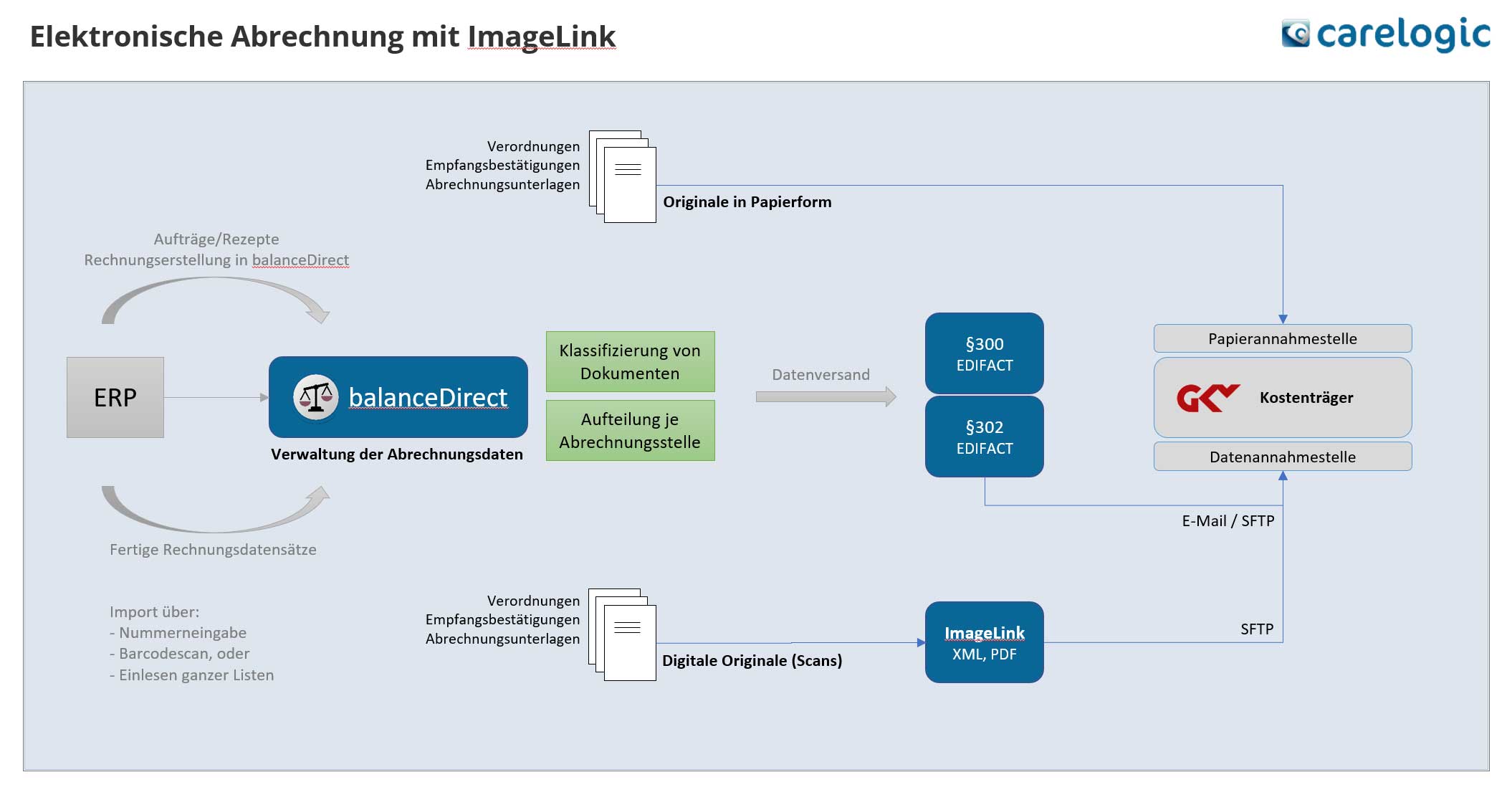 balanceDirect kennt sowohl die Abrechnungs- als auch die Imagedaten und kann den zweiteiligen Datenversand über einen integrierten Prozess abbilden.